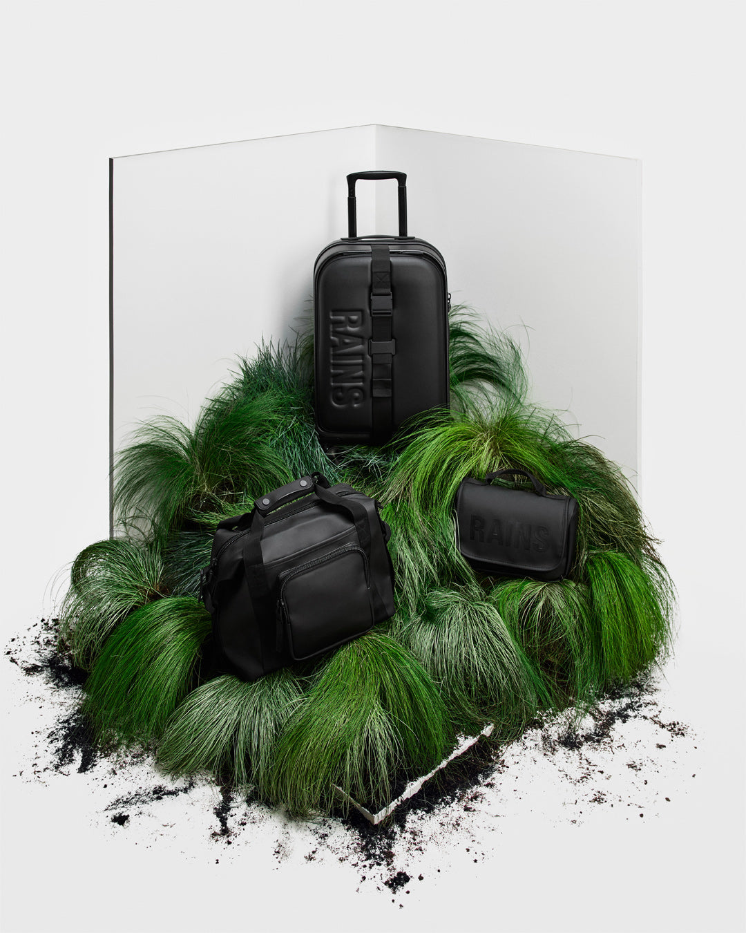 Rains’ answer to traveling light. Cut from waterproof PU.
