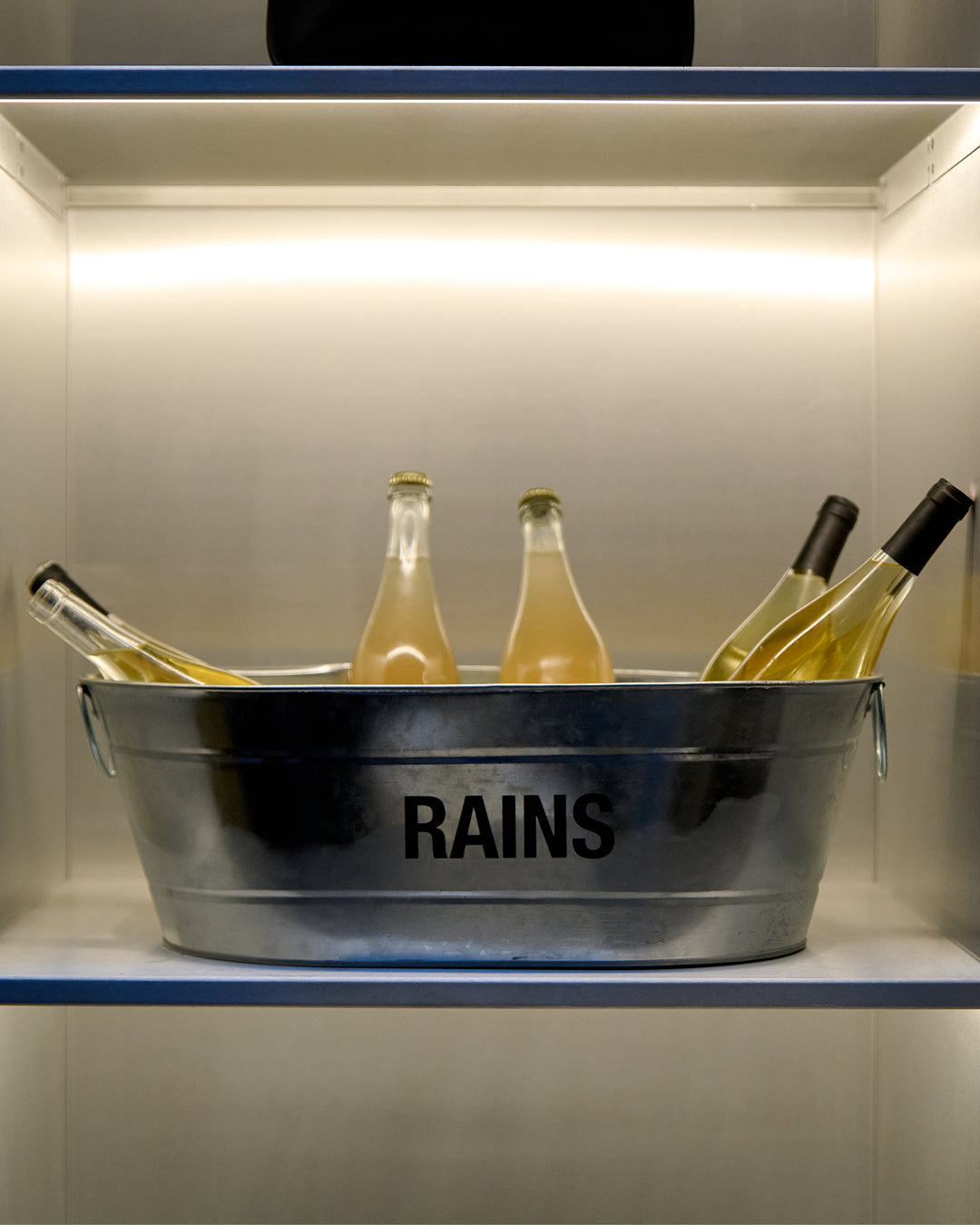 Rains brings its signature conceptual approach into the design of this space in the heart of Brussels. Hanging above the store is a custom-designed light fixture — a cloud-like sculpture that adapts its light to match the city’s ever-changing weather. A thoughtful detail that speaks to our legacy as an all-weather brand.