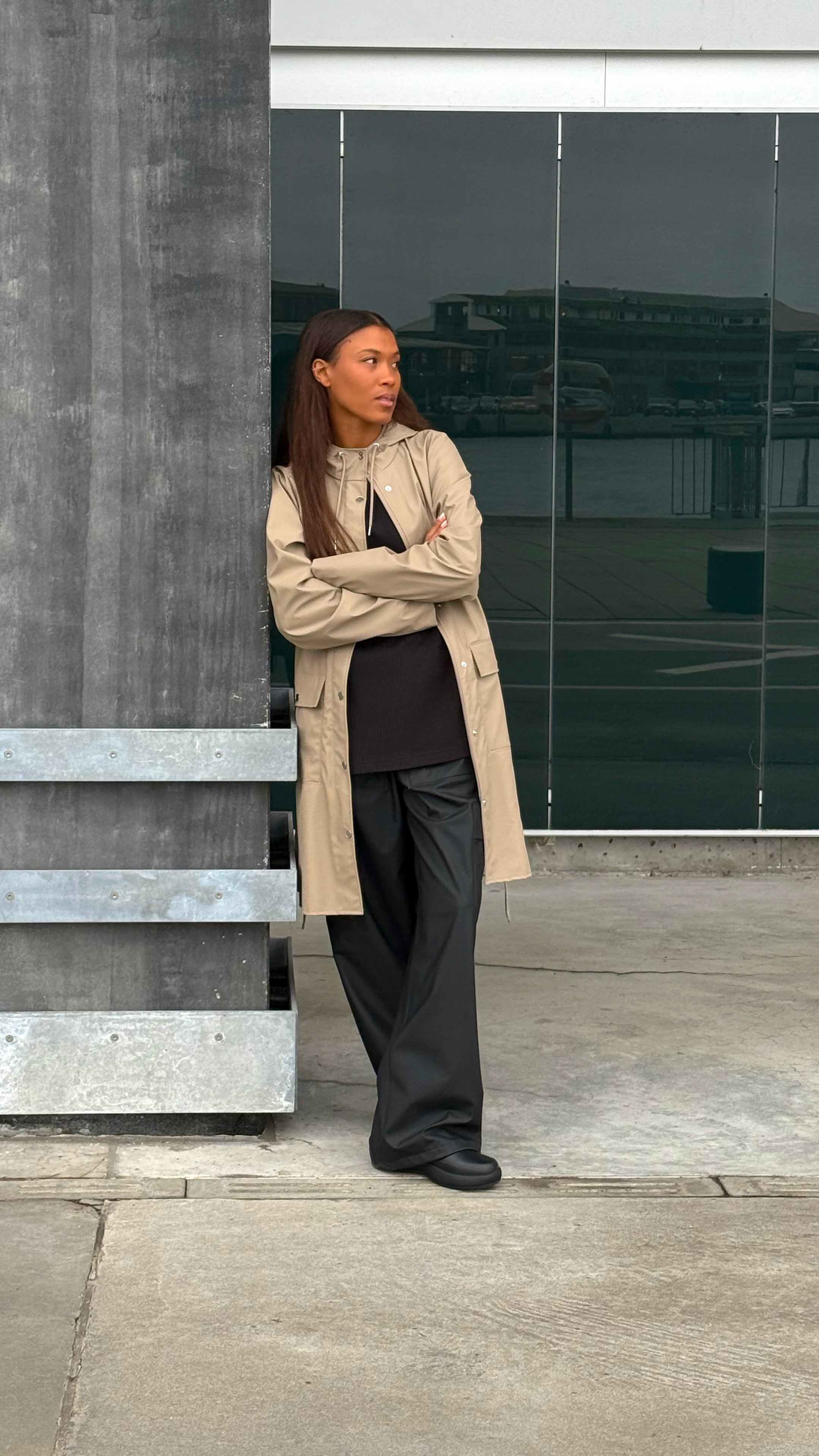 This design with a minimal silhouette is Rains' interpretation of the women's trenchcoat. The design is figure-flattering with high functionality.